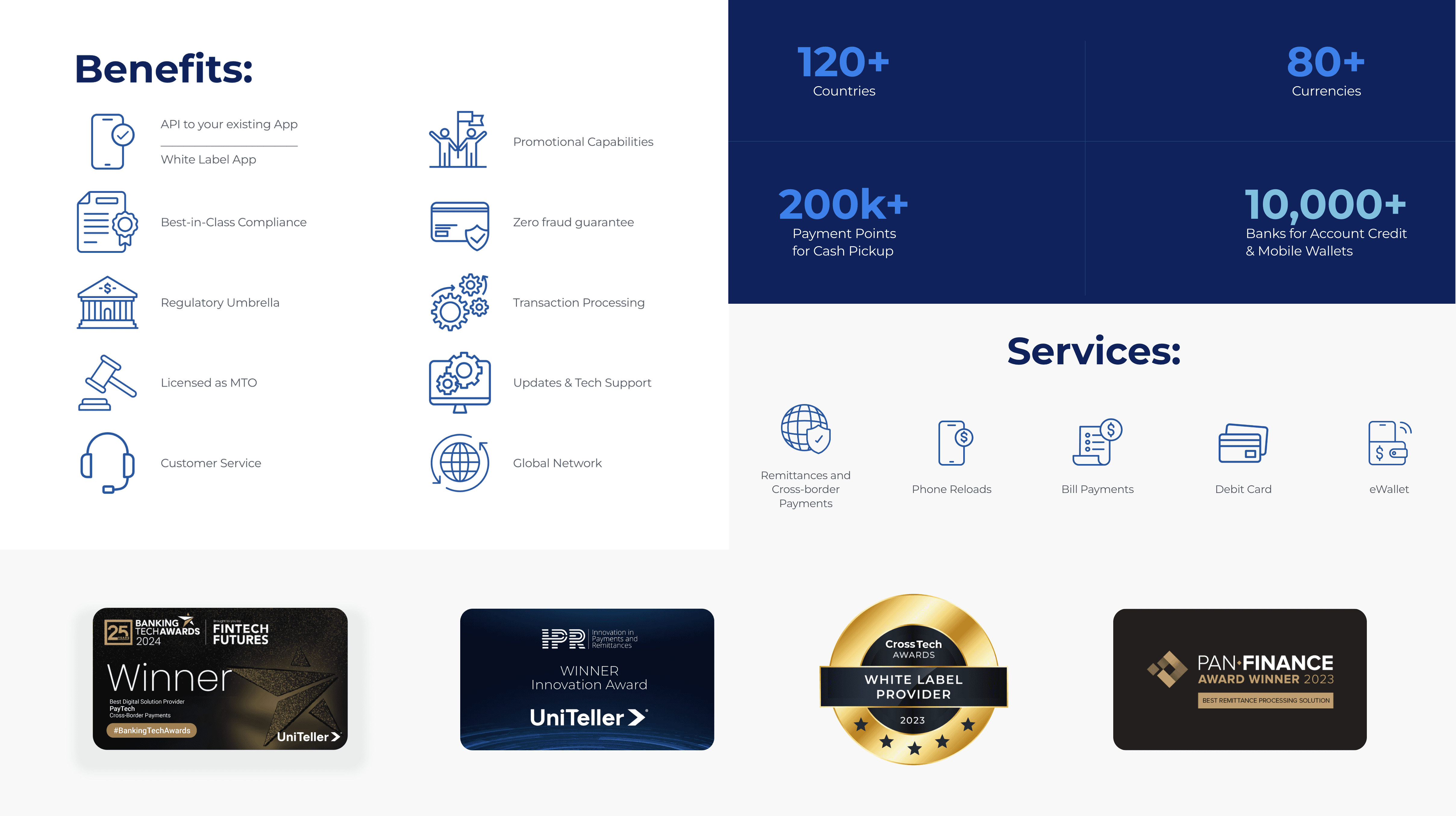 Designing a scalable white-label remittance platform for global partners. UniTeller Digital Link is a Remittance-as-a-Service platform that enables financial institutions, fintechs, and enterprise partners to launch fully branded cross-border payment experiences powered by UniTeller’s global infrastructure.